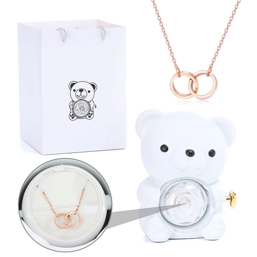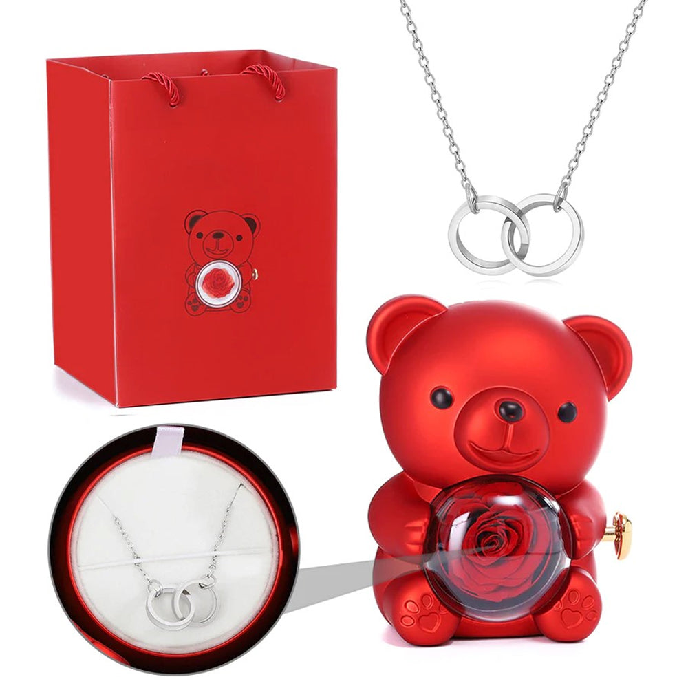 Colar Dueto de Amor + Urso com Rosa Eternizada
